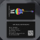 Gitarre Musiklehrer Website qr Code schwarze Visitenkarte mit Monogramm und farbenfrohe elektrische Gitarre. Farbenfrohe Aquarellgitarre in hellen Regenbogenfarben auf schwarzem Hintergrund mit personalisiertem Monogramm-Namen und QR-Code. Fügen Sie Ihre eigenen Daten mit der Vorlage hinzu, um eine berufliche Visitenkarte zu erstellen. Das perfekte Design für Gitarristen, Musiker und Musiklehrer. Einzigartiges Originalwerk und Typografie der Künstlerin Catherine Sweetman