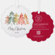 Einfache und elegante Urlaubsgrußkarte oder Geschenkmarke für Ihr Unternehmen, die Ihre Kunden und Kunden als Papierbaumschmuck verwenden können. Die Vorderseite ist mit einer modernen Aquarellfarbe von Pinienbäumen in Salbei grün, Rot, Gold und Orange und "Frohe Weihnachten" in einem stilvollen Drehbuch ausgestattet. Laden Sie auf der Rückseite Ihr Logo hoch, geben Sie Ihre Website-Adresse ein, um einen QR-Code zu erstellen, den Ihre Kunden scannen können, um sich einfach mit Ihren Online-Plattformen zu verbinden, und personalisieren Sie eine Nachricht an Ihre Kunden.