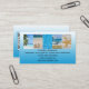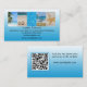 Visitenkarte mit einer Reihe von Fotos mit tropischem Strandmotiv auf weißem und türkisblauem Hintergrund. Auf der Rückseite ist Platz für Ihr eigenes Foto oder einen QR-Code. Ideal für einen Reise-Agent oder Reise-Blogger, und anpassbar für jeden anderen Zweck.