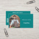 Ein aquamariner, grüner Hintergrund. Personalisieren Sie Ihren Titel, Geschäftsnamen/Namen und Text und fügen Sie ihn vorn hinzu. Weißer Text. Ein bogenförmiger Rahmen aus Foto. Zurück: Vorlagen für Ihren Namen, Titel, Telefonnummer, E-Mail- und Website-Adresse, Ihren eigenen QR-Code für Ihre Website oder Ihr Social-Media-Konto. Facebook und Instagram Icons/account.