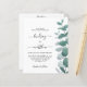 Mit dieser eleganten Einladung laden Sie Familie und Freunde zu Ihrer Hochzeitsfeier ein. Es ist mit Eukalyptussprigs in Aquarelltönen in Grüntönen dekoriert. Rett Papier, indem man die Details auf der Rückseite der Hochzeitseinladung und nicht auf separaten Gehäusekarten angibt. Fügen Sie Ihre Hochzeitswebsite QR Code. Original Wasserfarbe © Michele Davies.