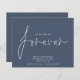 Budget QR Code Wir entschieden uns für Forever Dusty Navy Blue Save the Date Ein Budget Preis SMALLER 4,5" x 5,6" Alternative. Erhältlich in einem SEMI-GLOSS 110 lb CARD STOCK, der die Standardoption (dicker für Einladungen) ist, ODER einem SATIN FINISH 80 lb THINNER PAPER STOCK (ideal für Gehäuse). Fügen Sie Ihren QR-Code auf der Rückseite Ihrer Hochzeitswebsite hinzu. Ein schlichtes Design auf verzaubertem staubigen Marineblau, um Ihre Gäste zu einem rett Ihres Datums einzuladen. Umschläge sind optional. Wir entschieden uns für Forever, welches in einem stilvollen Set-Skript ist in der Mitte.Die Erholung des Textes können Sie leicht personalisieren. Text- und Hintergrundfarben können geändert werden, wenn Sie Ihr Hochzeitstil besser Anzug über die weitere Option anpassen möchten.