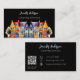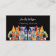Ein schwarzer Hintergrund mit farbenfrohen Häusern in Aquarellen. Personalisieren und fügen Sie Ihren Namen und Text auf der Vorderseite. Zurück: Vorlagen für Ihren Namen, Titel, Telefonnummer, E-Mail- und Website-Adresse, QR-Code für Ihre Website oder Ihr Social-Media-Konto.