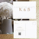 Weißes Monogramm Save the Date. Postkarte. Gold und Grau.