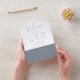 Diese minimalistische Hochzeitseinladung mit eleganter, staubblauer Typografie. Die Einladung enthält eine perforierte RSVP-Karte mit Ihrem Hochzeitswebsite QR Code. Entwickelt von Thisisnotme©