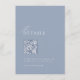Elegant unter dem Meeresthema Hochzeit QR Code Details Karte bietet stilvolle Drehbuch und klassische Schriftart-Details auf staubblauem Hintergrund, modern und romantisch, ideal für Meeresthemen Sommerhochzeit, Winter tropische Hochzeit in Urlaubsort, Küstenozeanhochzeit. Sehen Sie sich alle passenden Stücke in der Sammlung an.