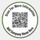 Sie können die Website URL für Ihren QR-Code ersetzen. Es gibt zwei Zeilen schwarzen Anzeigetextes, die Sie bearbeiten können, um eine benutzerdefinierte Nachricht zu zeigen. Diese Aufkleber haben schwarzen Text in einem weißen Kreis. Die Grenze ist grün.