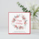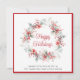 Firmenweihnachtskarte für Ihr Unternehmen oder Ihre Organisation mit einem Aquarellkranz aus roten Blumen, Beeren und saisonalen Pflanzen. "Happy Holidays" ist in einem eleganten roten Skript geschrieben. Personalisieren Sie Ihren Gruß und Firmennamen in einfacher moderner Typografie. Auf der Rückseite personalisieren Sie eine zusätzliche Dankesbotschaft, laden Ihr Firmenlogo hoch und geben Ihre Website-Adresse ein, um einen scannbaren QR-Code zu erstellen.