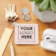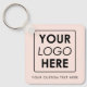 Ein moderner, minimalistischer Schlüsselanhänger für kundenspezifische Firmenlogos mit QR-Code. Passen Sie dieses berufliche Firmenlogo, QR Code und Text an und machen Sie es zu Ihrem eigenen. Perfekter Schlüsselanhänger für Firmenlogo für Branding, Business Marketing und Werbeaktionen, Kundengeschenke, Mitarbeitergeschenke für kleine und große Unternehmen.