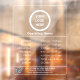 Diese vielseitige transparente Fensterklemme kombiniert Betriebszeiten, Kontaktdaten und einen QR-Code. Es ermöglicht Ihnen, Ihr individuelles Logo deutlich sichtbar zu machen und Ihre Arbeitszeiten in einem klaren, weißen Text aufzulisten, um eine maximale Sichtbarkeit zu gewährleisten. Das Hochladen Ihres QR-Codes mit relevanten Informationen für Ihre Kunden ist ein Kinderspiel. Ob Sie ein Restaurant, ein Einzelhandelsgeschäft oder Dienstleistungen betreiben, diese Verkleidung ist eine wertvolle Ergänzung Ihrer Geschäftsräume. Installieren Sie es in Ihrem Schaufenster, nach außen hin, um den Kunden auch in geschlossenen Stunden zu helfen. Ergänzt Ihre Geschäftszeiten mit anderen Angeboten aus unserer Geschäftsgrundlagenbeschriftung und Bannerkollektion, die Menüs, Werbeaktionen und Verkäufe, kommende Veranstaltungen, neue Produktversionen, Online-Bestellung und Wi-Fi-Zugang umfasst. Steigern Sie Ihre Kundenerfahrung und steigern Sie die Verlobung mit unserem vielseitigen Klebesortiment. Nutzen Sie dieses Kleben, um wichtige Daten über QR-Code wie Menüs, Werbeaktionen oder Kontaktinformationen zu teilen, und stellen Sie sicher, dass Ihr Unternehmen rund um die Uhr leicht erreichbar bleibt.