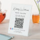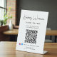 Chic custom pedestal Tischschild für Ihr Unternehmen mit Ihrem Namen in einer stilvollen Signatur-Script-Monogramm und Geschäftstyp unten in einfacher moderner Typografie. Geben Sie Ihre Website-Adresse ein, um einen QR-Code zu erstellen, den Kunden und Kunden nach Terminen, Produkten, Dienstleistungen, Stunden usw. durchsuchen können. Fügen Sie Ihre instagram und facebook Benutzer-ID für Kunden, um Ihnen auf Social Media folgen. Passen Sie die Größe des Schriftartes gegebenenfalls im Entwurfswerkzeug an.