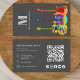 Gitarrenmusiklehrer Musiker graue Visitenkarte mit Website QR-Code-Vorlage und Kontakt Social Media Icon und Details perfekt für Business-Networking. Psychedelische akustische Gitarre, semi-akustische Gitarre und E-Gitarre in hellen Farben auf grauem Hintergrund komplett mit personalisiertem Monogramm, Name, Details und Ihrem Website QR Code. Coole moderne Musiker Visitenkartendesign für Gitarristen, berufliche Musiker, Entertainer und Musiklehrer. Original-Kunstwerk von Catherine Sweetman