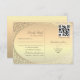 Diese bezaubernde Imitat Gold-Folie mit zwei Funktionen Hochzeitskarte RSVP kombiniert modernes Design mit Vintagem Charme. Es bietet Platz für die Namen der Gäste und die Menüauswahl, sodass Ihre Gäste leicht antworten können. Mit einem komfortablen QR-Code für mühelose Online-RSVPs oder der Möglichkeit, ihn als Postkarte mit Stempel zu schicken, ist er perfekt für eine stilvolle, zeitgemäße Hochzeit. Vereinen Sie Komfort und Eleganz nahtlos!