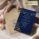 Elegante marineblaue Hochzeitseinladung mit echten Goldfolie-Blumenakzenten und Streichelleuchten, perfekt für ein Winter- oder Abend-Fest. Enthält einen modernen QR-Code für den einfachen UAWG. Diese Einladung ist ausgeklügelt und bequem und Set den Ton für ein magisches Ereignis.