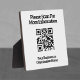 QR-Code auf einer Gegenoberplatte, um den Kunden zu zeigen. QR-Codeanzeige z.B. an einem Empfang-Schreibtisch.