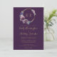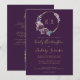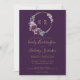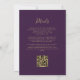 Dieses Hochzeitsdesign zeigt die Monogramm-Initialen der Braut und des Bräutigams in goldfarbenem Text, gerahmt durch einen Aquarellkranz violetter Blumen auf einem vergoldeten Imitat-Folienkreis. Personalisieren Sie den Text mit den Namen der Paare in elegantem goldfarbenem Handschriftenheft und die Hochzeitsdetails in serifenem Sans-Schriftart auf einem lila Hintergrund. Die Rückseite bietet Platz für Hochzeitsdetails auf einem soliden lila Hintergrund, zusammen mit einem QR-Code, den die Gäste scannen können, um Ihre Website und UAWG zu besuchen, was die Kosten für den Druck und Versand separater RSVP-Karten rette.