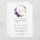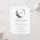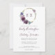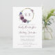 Dieses Hochzeitsdesign zeigt die Monogramm-Initialen der Braut und des Bräutigams in dunklem lila, durch einen Aquarellkranz violetter Blumen auf einem vergoldeten Imitat-Folienkreis gerahmt. Personalisieren Sie den Text mit den Namen der Paare in eleganter, dunkler lila Handschrift und den Hochzeitsdetails in Holzkohle grau. Die Rückseite bietet Platz für Hochzeitsdetails auf einem soliden, weißen Hintergrund, zusammen mit einem QR-Code können Gäste scannen, um Ihre Website und UAWG zu besuchen, was die Kosten für den Druck und Versand separater RSVP-Karten rette.