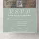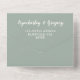 Die elegante und elegante Hochzeitseinladung mit einem nebeligen, schlauen grünen Hintergrund und cremefarbenem Elfenbeintext. Das Innere der Einladung kann mit einem großen Foto angepasst werden, um die Einladung wirklich einzigartig für Sie zu machen. Das Foto verfügt über ein durchsichtiges, grün formatiertes Overlay, um das Bild in das bestehende Farbschema zu integrieren und den Text sichtbarer zu machen. Diese Einladung ist ideal für Paare, die eine minimalistische, aber elegante Ästhetik für ihren besonderen Tag suchen. Das Highlight dieser Einladung ist der bequeme QR-Code, mit dem Sie mühelos mit ihren Smartphones UAWG machen können. Für Traditionalisten haben wir auch eine traditionelle UAWG in Papierform eingeführt. Mit dem All-in-One-Design können die Gäste den UAWG leicht wegreißen und ihn zurückschicken. Zusätzlich haben wir E-Mail-Informationen für RSVPs bereitgestellt, um einen nahtlosen und komfortablen UAWG zu gewährleisten. Über dem Foto befindet sich ein durchsichtiges, Vintages Overlay, das der Vintagen Ästhetik der Einladung entspricht. Diese Vorlage wurde mit einem landschaftsorientierten Foto erstellt, und der Kunde wird sich höchstwahrscheinlich leichter mit einer gelungenen Bildplatzierung durch ein landschaftsorientiertes Foto befassen können.