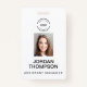 Erhöhen Sie Ihr berufliches Branding mit diesem Minimalistischen Black and White Employee Foto Name Abzeichen. Dieses schlanke Design ist vollständig anpassbar und bietet Platz für den Namen, das Foto, das Firmenlogo, die Website und einen QR-Code für den sofortigen Zugriff auf Kontaktinformationen. Ideal für Unternehmen, die die Verlobung ihrer Kunden verbessern und gleichzeitig eine berufliche Ästhetik beibehalten möchten. Dieses Abzeichen ist ideal für Veranstaltungen, Firmenbüros oder Einzelhandelsumgebungen und verbindet Funktionalität und Stil und verlasst so einen bleibenden Eindruck. Personalisieren Sie es für jedes Teammitglied, um das polierte Image Ihres Unternehmens zu reflektieren.