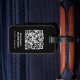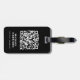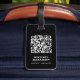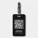 Moderne berufliche schwarze Gepäckmarke mit Ihrem Firmenlogo und QR-Code. Fügen Sie Ihren Namen und Titel in einfacher weißer Typografie hinzu.