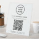 Modernes Tischschild für Ihr Unternehmen mit QR-Code für Kunden, um eine Liste Ihrer Produkte, Dienstleistungen, Preise, anderen Informationen oder mobilen Zahlungen zu suchen. Laden Sie Ihr Logo und den QR-Code der Website hoch und fügen Sie Ihren benutzerdefinierten Text, wie Firmenname, Telefonnummer, Straßenadresse oder andere Informationen in einfacher Typografie hinzu.