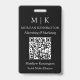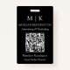 Modernes Abzeichen für Minimalistische Namen. Schwarz & Weiß oder wählen Sie Ihre eigenen Farben. Fügen Sie dem QR Scan Code Ihre Website oder Web-Adresse für Social Media hinzu. Ideal für kleine Unternehmen, Firmen-Marken, Selbstständige, Schönheitssalons, Wellness-Center, Caterer, Bäckereien, Kaffeehäuser, Restaurants und vieles mehr. Einfach mit Ihren Monogramm-Initialen, Firmennamen und Informationen, Jobtitel, Slogan, Mitarbeiter-Foto oder sogar mit Ihrem Logo oder persönlichem Markendesign personalisieren.