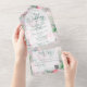 Diese Einladung zeichnet sich durch eine einfache Aquarellfarben mit blühendem Hintergrund mit Rosa und Grün aus. Es ist perfekt für jede Art von Hochzeit von der lässigen Gartenhochzeit bis zu formalen Angelegenheiten. Die All-in-One Hochzeitseinladungen sind schön und praktisch, indem sie die Hochzeitseinladung mit einer leicht zu entfernenden perforierten UAWG-Postkarte kombinieren. Sie sind auch schnell und einfach für den Versand vorbereitet. Einfach auf die Einladung richten, die Rückenklappe und das Siegel mit den beiliegenden Klarsichtstickern falten. Sobald Ihre Gäste die voradressierte Einladung erhalten, reißen sie einfach die perforierte RSVP-Karte ab und lassen sie in der E-Mail ablegen. Der QR-Code erlaubt es Ihren Gästen, einfach auf Ihre Hochzeitswebsite zuzugreifen, um Informationen zu erhalten, wie zum Beispiel Empfang und Abendessen.