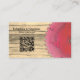 Die Vorderseite der Visitenkarte ist mit einem rustikalen roten Sägeblatt auf einem groben Holzhintergrund mit einem QR-Code-Platzhalter versehen. Personalisieren Sie die Vorlage, entfernen Sie Text oder klicken Sie auf Stil, Größe und Schriftart anpassen. Ersetzen Sie den QR-Code durch Ihren. Dieses Visitenkarten-Design kann gut für die Holzrestaurierung, den Tischler, Baustellen oder vielleicht Ihr Unternehmen funktionieren.