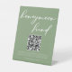 Dieses einfache, solide und grüne Hochzeitsflitterwochenschild besticht durch elegantes weißes Drehbuch für eine Feier im Freien in einer Naturlandschaft. Minimalistische Typografie auf friedlich hellgrüner Beschilderung mit Ihrer Website QR-Code für einen rustikalen Ort außerhalb eines Waldes von Bäumen.