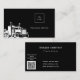 Ein schwarzer Hintergrund mit einem weißen LKW als Dekoration. Personalisieren und fügen Sie Ihr Firmenlogo und einen Text auf der Vorderseite. Weiße Buchstaben Zurück: Vorlagen für Ihren Namen, Titel, Telefonnummer, E-Mail und Website-Adresse. Fügen Sie Ihren eigenen QR-Code zu Ihrer Website hinzu.