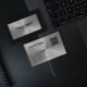 Moderne und luxuriöse Visitenkarte mit silberem Hintergrund und schwarzem Mesh mit QR-Code