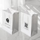 Eine berufliche weiße Geschenktasche mit Firmennamen, individuellem Text, Ihrem Firmenlogo, QR Code, Website Adresse und Social Media Handle. Einfach anpassen und zu Ihrem eigenen machen!