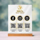 Multi QR Code Business Sign - Social Media Display für Instagram & Facebook! Steigern Sie mit diesem eleganten Social Media QR Code Acryl Sign Ihre Geschäftspräsenz und nutzen Sie die Multiplattform-Konnektivität für Instagram, Facebook und Ihre Website. Dieses für Beauty-Profis und kleine Unternehmer konzipierte Schild vereinfacht die Verlobung der Kunden mit einem schnellen Scan. Ideal für Salons, Boutiquen und Veranstaltungen, bietet es eine moderne Möglichkeit, Ihre digitalen Profile zu präsentieren. Passen Sie die QR-Codes an, um direkt auf Ihre Social-Media-Konten oder Websites zu verlinken. Dieses Akrylschild ist dauerhaft und stilvoll, funktional und auffällig. Bestellen Sie jetzt, um Ihre Social Media-Strategie zu rationalisieren!