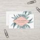 Einzigartiges tropisches Design mit Ihrem Namen und Ihrem Titel oder Geschäftsnamen, der auf einem geometrischen Element der Sommerpfirsichpfirsiche angezeigt wird, das sich über die Blätter der Jasper-grünen tropischen Palmenfronten erstreckt. Fügen Sie auf der Rückseite Ihre Kontaktdaten hinzu, die mit einer kleineren Palmfront und einem anpassbaren QR-Code verziert sind.