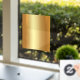 QR-Code für Unternehmen hochladen Gold-Blank Fensteraufkleber