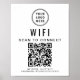 Modernes und einfaches Plakatzeichen, das Ihren Kunden, Kunden oder Gästen eine einfache Verbindung zu Ihrem WiFi-Netzwerk ermöglicht. Laden Sie Ihr Logo und den WiFi QR-Code hoch und fügen Sie weitere Details hinzu, wie den Namen und das Kennwort des Netzwerks.