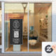 Elegantes, modernes, stilvolles schwarzes Business Logo, QR Code Window Cling. Ideal für Geschäftsreisende. Verkleben des Werbefensters Personalisieren Sie es mit Ihren Daten.