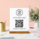 Modernes weißes Acrylzeichen für Ihr Geschäft mit Ihrem QR-Code für Kunden zu scannen, um eine Zahlung zu machen, siehe eine Liste Ihrer Produkte, Dienstleistungen und Preise, buchen Termine, registrieren, etc. Laden Sie Ihr Logo und Ihren QR-Code hoch und fügen Sie Ihren Firmennamen, Telefonnummer, Straßenadresse oder andere Informationen in einfacher Typografie hinzu.