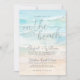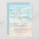 Einfaches Badewetter Sommer am Strand Einladung zur Hochzeit. Die Bühne für eine elegante Hochzeit am Meer wird von einem ruhigen, blauen und bunten Strandhintergrund Set. Das Kunstwerk zeigt einen nahen Aufstieg des Ufers, der sanfte Ozeanwellen trifft. Es bietet ein sanftes, leicht abstraktes Ambiente an der Küste. Die Phrase "on the beach" wird oben in der Schrift "süsse Schrift" dargestellt, wobei die Erholung der Details in einem modernen Schriftart gehalten wird, was dem Layout ein lässiges und dennoch raffiniertes Ambiente verleiht. Schriftart werden in dunkelgrau angezeigt, können aber in jeder Farbe geändert werden. Die Rückseite der Einladung enthält Platz für einen scannbaren QR-Code, der auf Ihre Hochzeitswebsite verlinkt, wo die Gäste UAWG oder mehr Informationen über die Feier erhalten können. Erhältlich als gedruckte Einladung oder als herunterladbare digitale Datei zum E-Mail senden oder lokal drucken. Alle Texte, Schriftart und Farben können auf Ihren Hochzeitsstil abgestimmt werden.