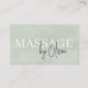 Eine beruhigende Aquarelltöne schlängelgrüne Visitenkarte mit subtilen Goldakzenten, die für ein beruhigendes und berufliches Aussehen entworfen wurde. Die Vorderseite ist mit eleganter Typografie versehen, während auf der Rückseite ein scannbarer QR-Code für Sofortbuchungen oder Kundenverbindungen vorhanden ist. Ideal für Massagetherapeuten, Wellness-Center und Wellness-Profis, die eine moderne luxuriöse Visitenkarte mit einem natürlichen, ruhigen Stil gewollt haben.