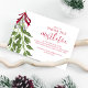 Dieses Design bietet eine Weihnachtsfeier niedliche Misteloe-Party Einladung mit grünen Blattbeeren Blätter Heiligenbeeren, QR-Code Facebook Social Media, eine scannable URL-Scan-Website-Veranstaltung, eine elegante grüne Blätter grün, Aquarellbeeren, whimsical einfache minimalistisch, ein trendiger Kalligraphieskript, whimsical Typografie-Schriftart Weihnachtsfeier lädt ein