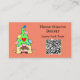 QR Code Gnome Heimat Bäckerei Business Card. Funny Baker Gnome mit einem Makaronhut und mit einem Stück Kuchen. Eine lustige Backkarte. Personalisieren Sie diese Vorlage mit Ihren Informationen. Passen Sie es für weitere Änderungen an. Auf der Rückseite der Karte befinden sich vier soziale Mediensymbole. Beim Anpassen kann jedes einzelne Bild abgenommen und verschoben werden.