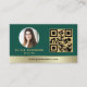 Make a strong first impression with this green and gold real estate business card featuring a modern house logo and custom QR code. The rich green tone conveys trust, stability, and growth, while the metallic gold accents add a refined, upscale touch. The QR code offers a quick and professional way for clients to access your listings, website, or digital business card. Perfect for realtors, brokers, and agents who value timeless design with modern function.
