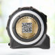 Modernes berufliches Bandmaß für Ihre Konstruktion, Auftragnehmer, Umbau, Innenarchitektur, reale Anwesen-Bewertung oder andere Geschäfte mit Ihrem Namen, Slogan oder anderen Texten in einfacher Typografie auf einem gebürsteten Imitat Metall Hintergrund. Geben Sie die URL-Adresse Ihrer Website ein, um einen QR-Code zu generieren.