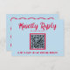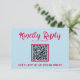 Eine einfache und elegante Kalligraphie farbenfrohe Retro-Hochzeitskarte rsvp. Das hat einen Vintagen, modernen Himmelblau Hintergrund mit magenta vid fett roten Skript. Mit anpassbarem QR Code. Minimalistisch und elegant mit handgeschriebener Schrift. Sie können alle editierbar sein, indem Sie auf die Schaltfläche Personalisieren klicken.