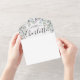 Alles in einer Hochzeitseinladung mit hübschem Grün, Blumenbezeichnungen und schicken Typografie. Die Einladung enthält eine perforierte RSVP-Karte, die Ihren QR-Code für Ihre Hochzeitswebsite enthält. Entwickelt von Thisisnotme©