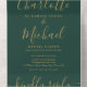 Alles in einer Hochzeitseinladung mit hübschen Saitenlichtern, prächtigen Stilbezeichnungen und schicker Goldtypografie auf smaragdgrünem Hintergrund. Die Einladung enthält eine perforierte RSVP-Karte mit QR-Code. Entwickelt von Thisisnotme©