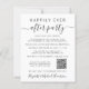 Budgetreiche Veranstaltung oder private Hochzeitsankündigung und Hochzeitsempfang oder Feier Party Einladung. Die Vorderseite zeigt "Happily Ever After Party" in einer Mischung aus einfacher Typografie und einem trendigen Drehbuch mit Swashes. Personalisieren Sie Ihre Heiratsankündigung und Einladung detaillierter und Ihre Namen in einem signaturähnlichen Skript. Geben Sie Ihre URL-Adresse Ihrer Hochzeitswebsite ein, um einen QR-Code für Ihre Gäste zu erstellen, um online UAWG zu erhalten und Informationen über Unterkünfte, Anfahrtszeiten, jede Nacht vor Partys und andere Details zu erhalten. Auf der Rückseite finden Sie Ihre Vornamen und das Hochzeitstermin.