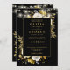 Diese elegante schwarz-goldfarbene Blumenstrauß-Lichter Hochzeitseinladung kann mit Ihren Informationen in der modernen Typografie mit Ihrem Hochzeitswebsite QR-Code auf der Rückseite personalisiert werden. Entwickelt von Thisisnotme©