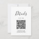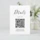 Eleganter und minimalistischer schwarz-weißer QR-Code Hochzeitsdetails Gehäuse Karte in moderner Kalligrafie. Diese Karte kehrt in eine solide Weise grün Farbe und Paare schön mit meinen Hochzeitsbriefpapier-Suiten. Entworfen von Victoria Grigaliunas of Do Tell A Belle. Weitere Designs finden Sie unter www.zazzle.com/dotellabelle.